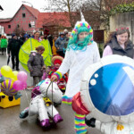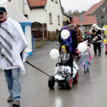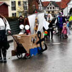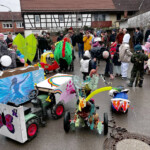 Einen Vorgeschmack auf den Rosenmontagsumzug gaben die Kindergartenkinder. Mit ihren zu Motivwagen umgerüsteten Tretfahrzeugen fuhren sie eine Runde durch das Dorf und freuten sich über die Helau rufenden Zaungäste. Im Anschluss daran verlieh Kindergartenleiterin Vera Nebel selbstgebastelte Orden an die Kinder und lud zu einem Umtrunk in den Pfarrheim-Hof ein.