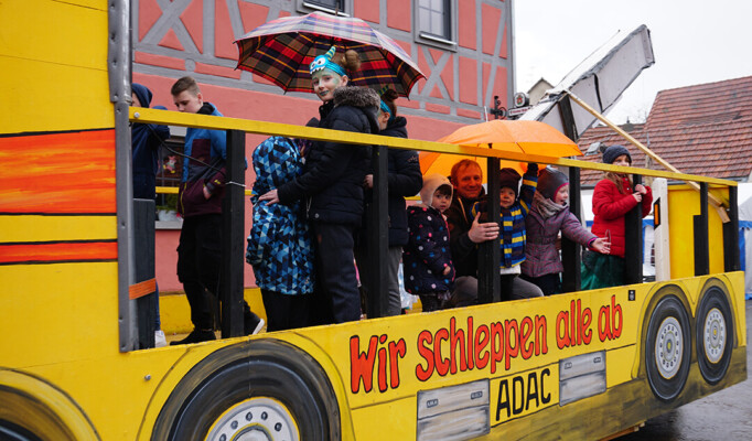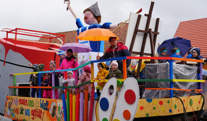 Der Kinderfasching ist die jährliche Königsdisziplin. Nicht nur muss aller Abfall, alle Reste und Pfützen vom Rosenmontag beseitigt werden, nein ab 12 Uhr gibt es auch noch frisch zubereitetes Mittagessen. Schlemmersteak und Schnitzel, Pommes oder Salat. Ab 14 Uhr dürfen die Kinder dann in einer kleinen Dorfrunde selbst einen Faschingsumzug machen. Begleitet von Musikkapelle, Elferrat und Garden. Nach den Tänzen der Garde gibt es das Highlight des Kinderfasching: Disko mit DJ Cylli.
