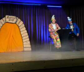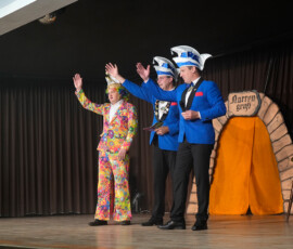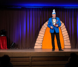 Beim Ausgrabungssketch war Sitzungspräsident Jochen Gans in der Narrengruft auf der Suche nach dem Fasching. Der Tod hatte im versprochen den Fasching bis 15.11 um 19 Uhr den Fasching wieder in Wargolshausen abzuliefern. Der Fasching war aber nicht da. Als plötzlich der Vorhang aufging und die Gäste auf den Fasching warteten, startete Jochen mit einem ersten Faschings-Witz in die neue Session. Dann kam der Fasching. Der Tod hatte ihn fälschlicherweise in Hollstadt herausgelassen. Mit einigen Anmerkungen wie „Gut“ die Hollstädter Fasching feiern können ist er nach Wargolshausen gelaufen, weil ihn keiner mitgenommen hat. Die zwei besten Hollstädter Faschingsnarren, Janina Borchert und Lina Mahlmeister (Gardetrainerinnen „Blaue Dragoner“), sind sowieso schon seit Jahren in Wargolshausen in der WA-KA-GE. Der Fasching hatte sich das Jahr über mit einer ganzen Reihe von Faschingswitzen auf den 11.11. vorbereitet. Die trug er dann mit dem Sitzungspräsidenten gemeinsam vor. So starten wir jetzt in die kurze Session 2026, die am 18.02. schon wieder vorbei ist.