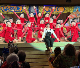 Bombenstimmung herrschte bei der „Fränkischen Partynacht“ der Wa-Ka-Ge. Mit dabei waren die Garden der Wa-Ka-Ge samt Männerballett, „Elfriede & Ludwig“ (Franky Schmitt und Lorena May), Fredi Breunig als „Zeitungswurm“, die „Lückenbüßer“ (Georg Gans, Albert Warmuth, Luis Chevallie, Florian Rink und Christoph Büttner) sowie der „Schmied aus Bischbrunn“ (Thomas Väth).