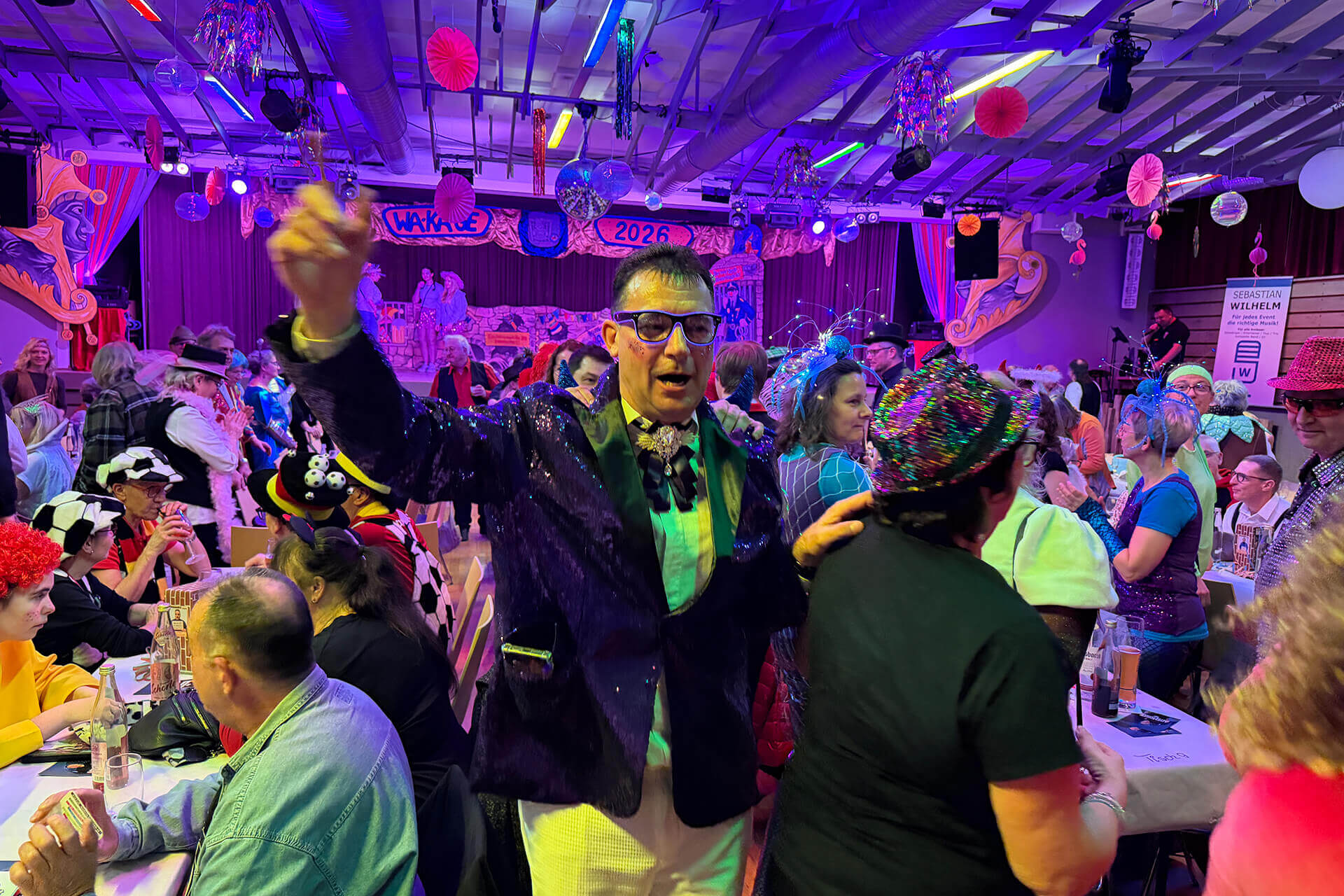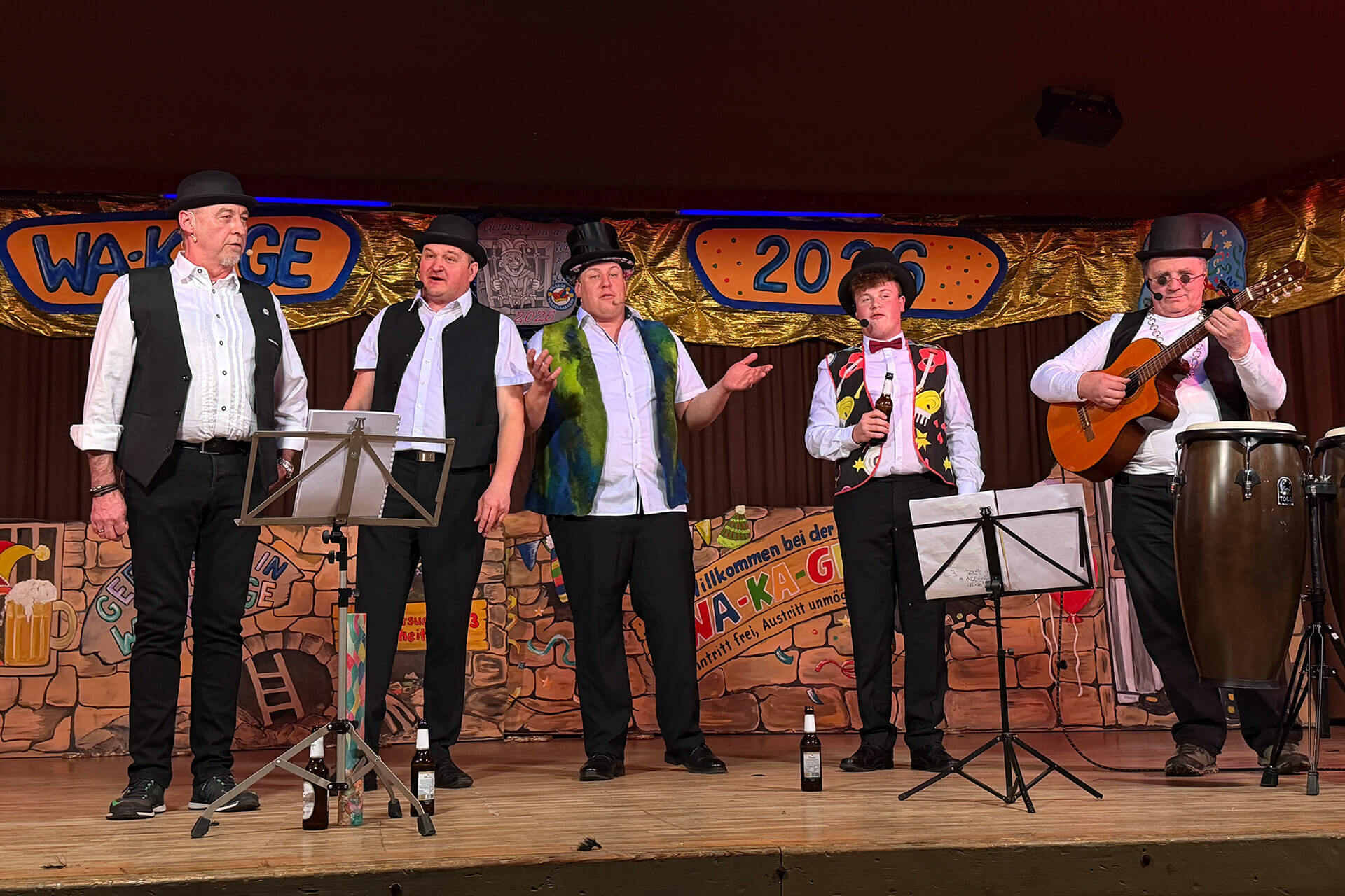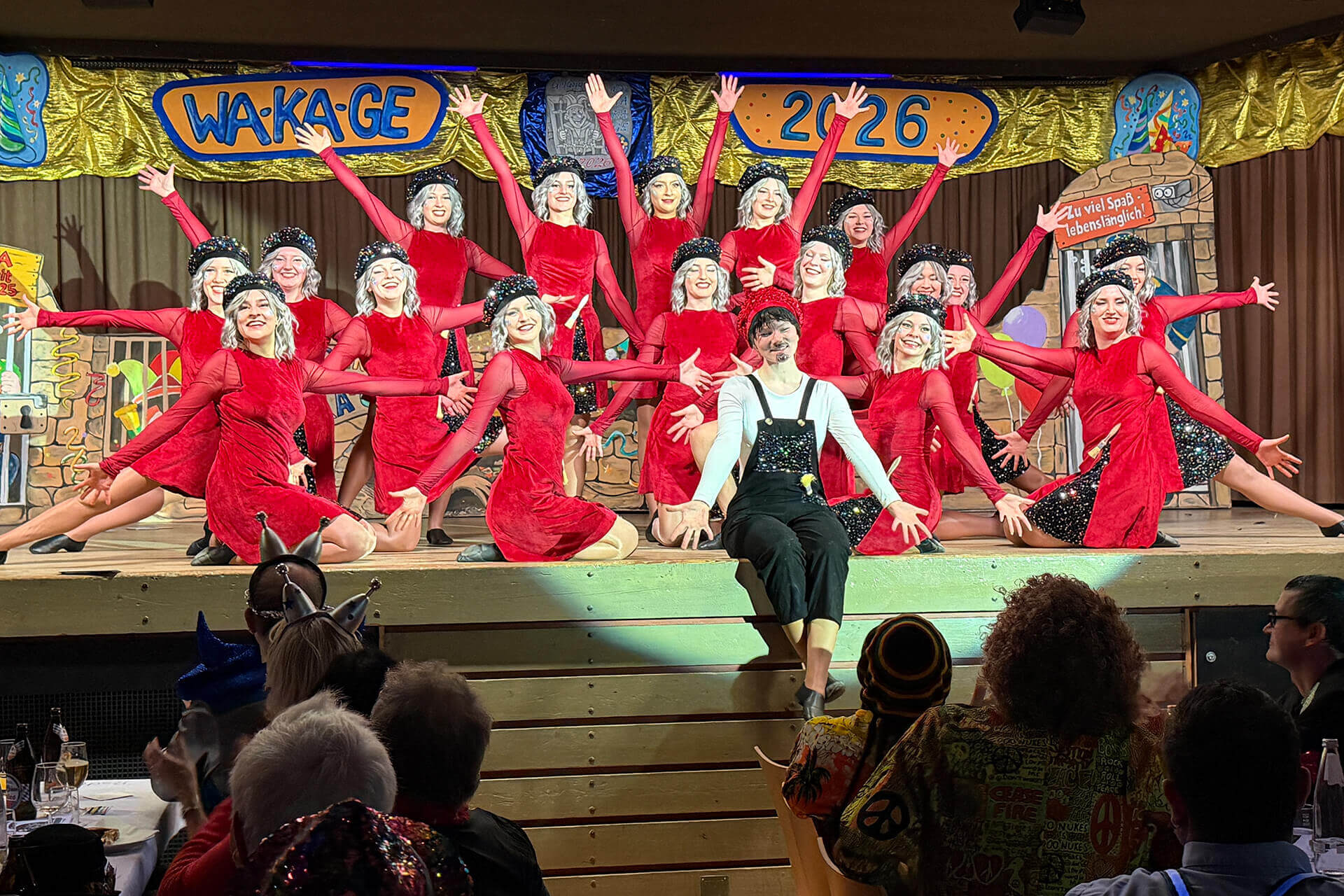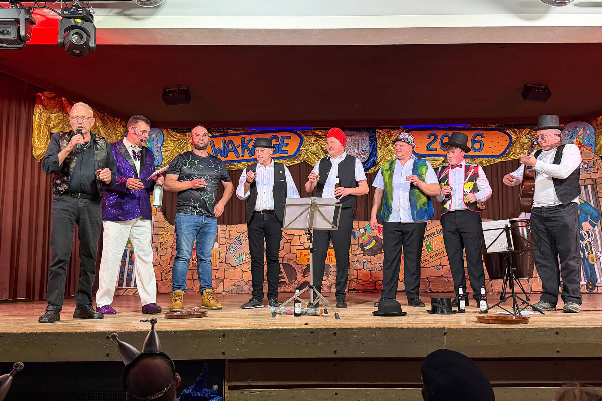 Bombenstimmung herrschte bei der „Fränkischen Partynacht“ der Wa-Ka-Ge. Mit dabei waren die Garden der Wa-Ka-Ge samt Männerballett, „Elfriede & Ludwig“ (Franky Schmitt und Lorena May), Fredi Breunig als „Zeitungswurm“, die „Lückenbüßer“ (Georg Gans, Albert Warmuth, Luis Chevallie, Florian Rink und Christoph Büttner) sowie der „Schmied aus Bischbrunn“ (Thomas Väth).