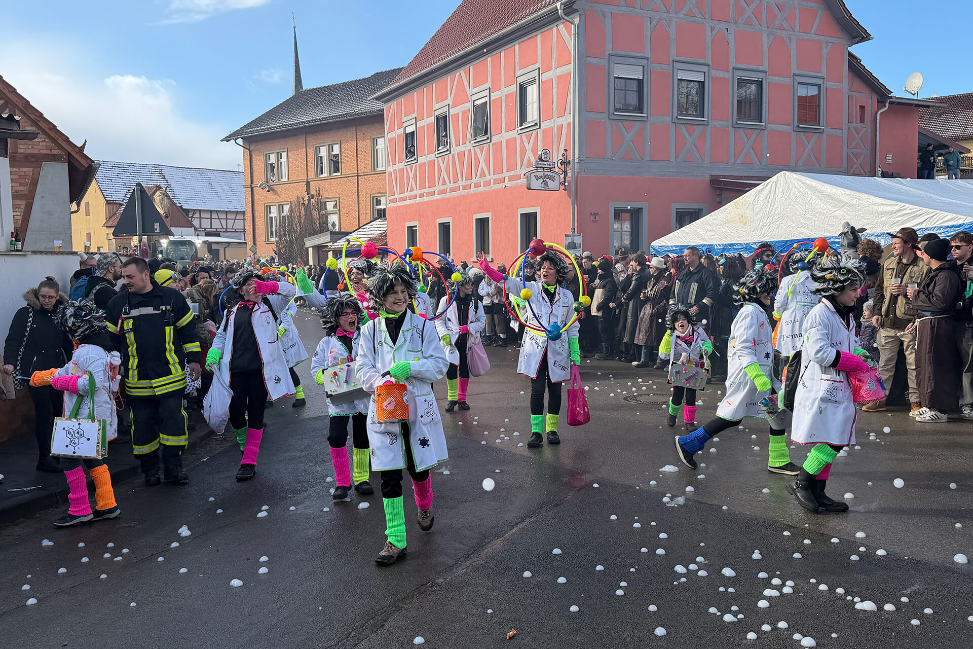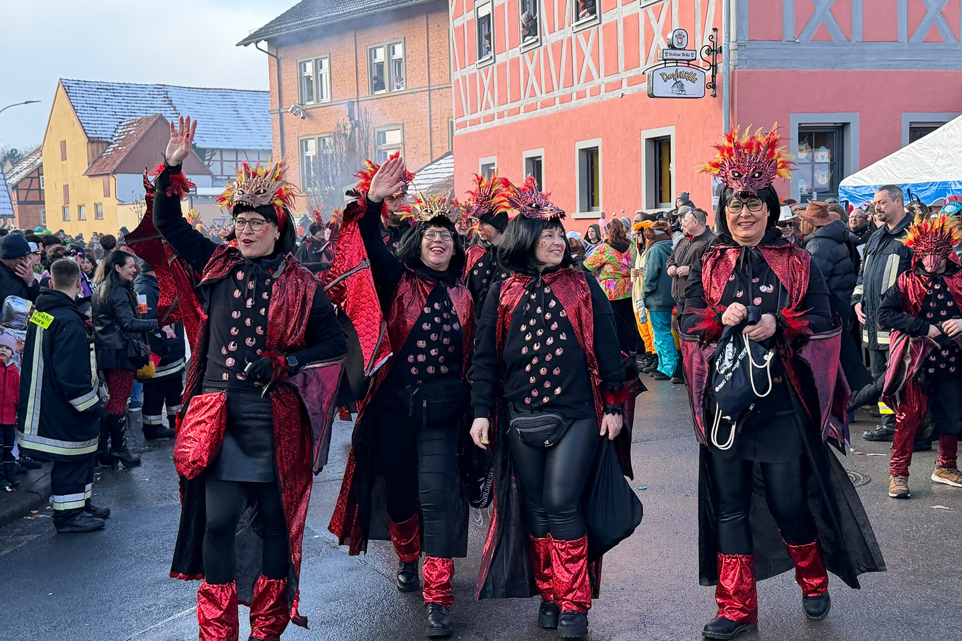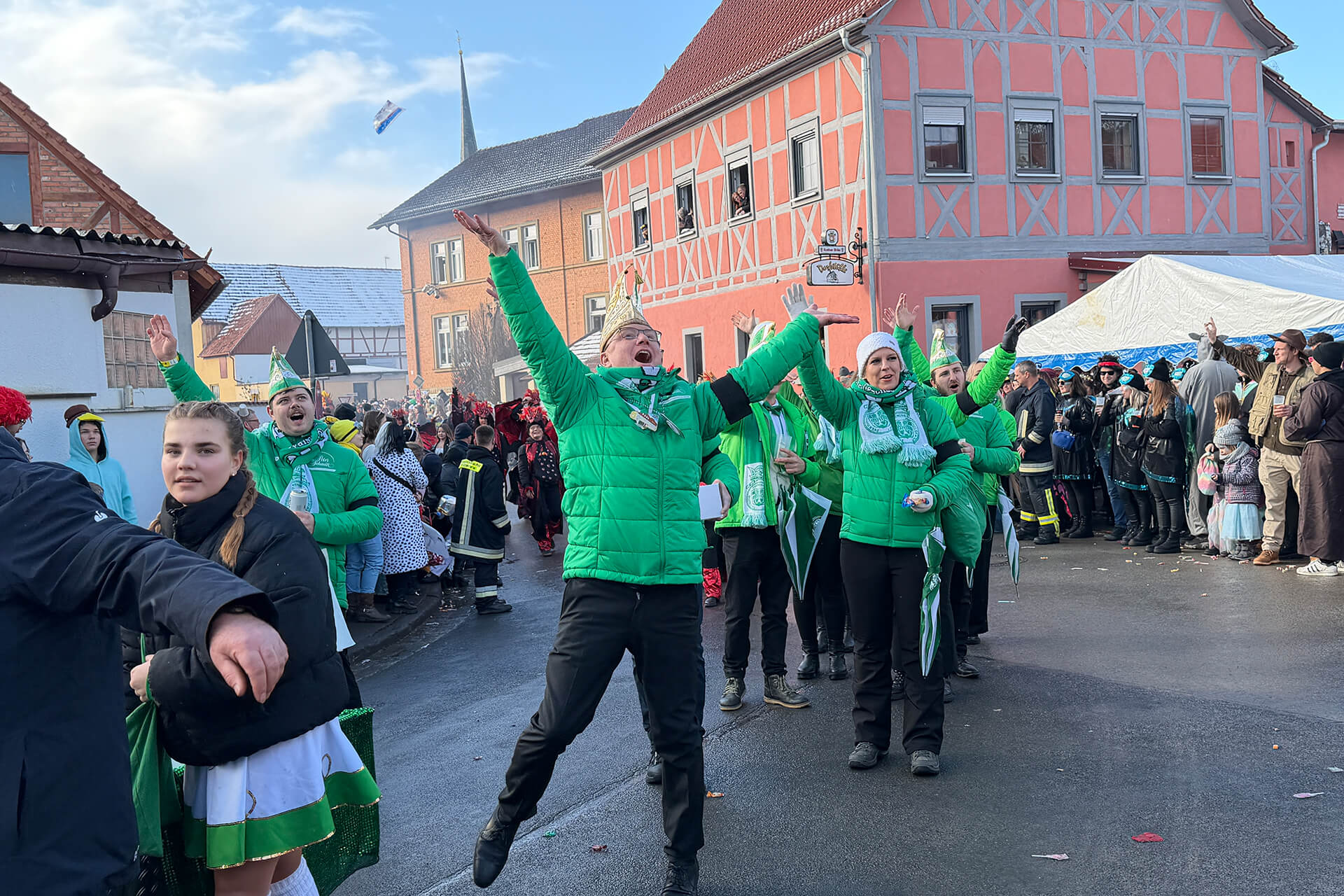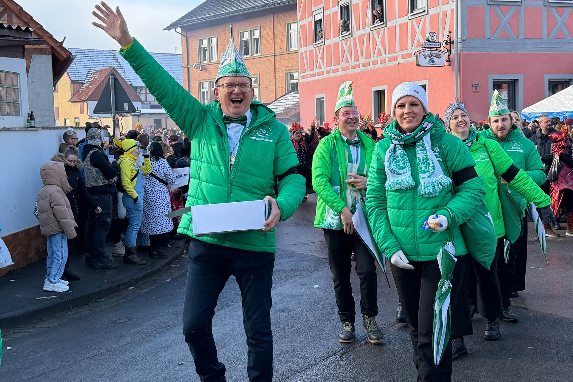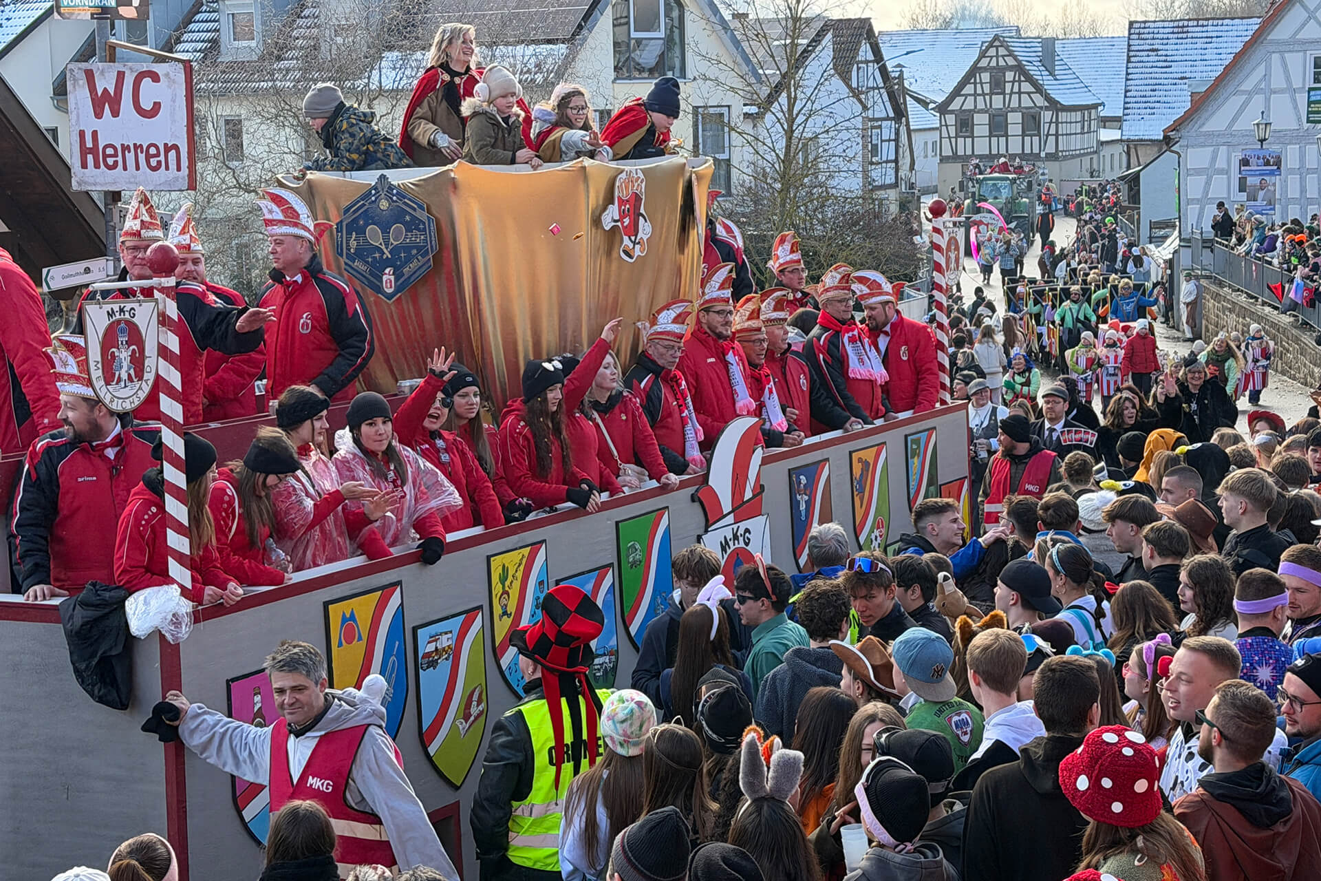 Noch in den frühen Morgenstunden konnte man kaum glauben, dass uns ein so fantastischer Rosenmontag erwartet. Über Nacht hatte es geschneit, doch dank vieler helfender Hände beim Schippen, Räumen und Kehren konnte der Startschuss pünktlich fallen – dafür ein riesiges Dankeschön!