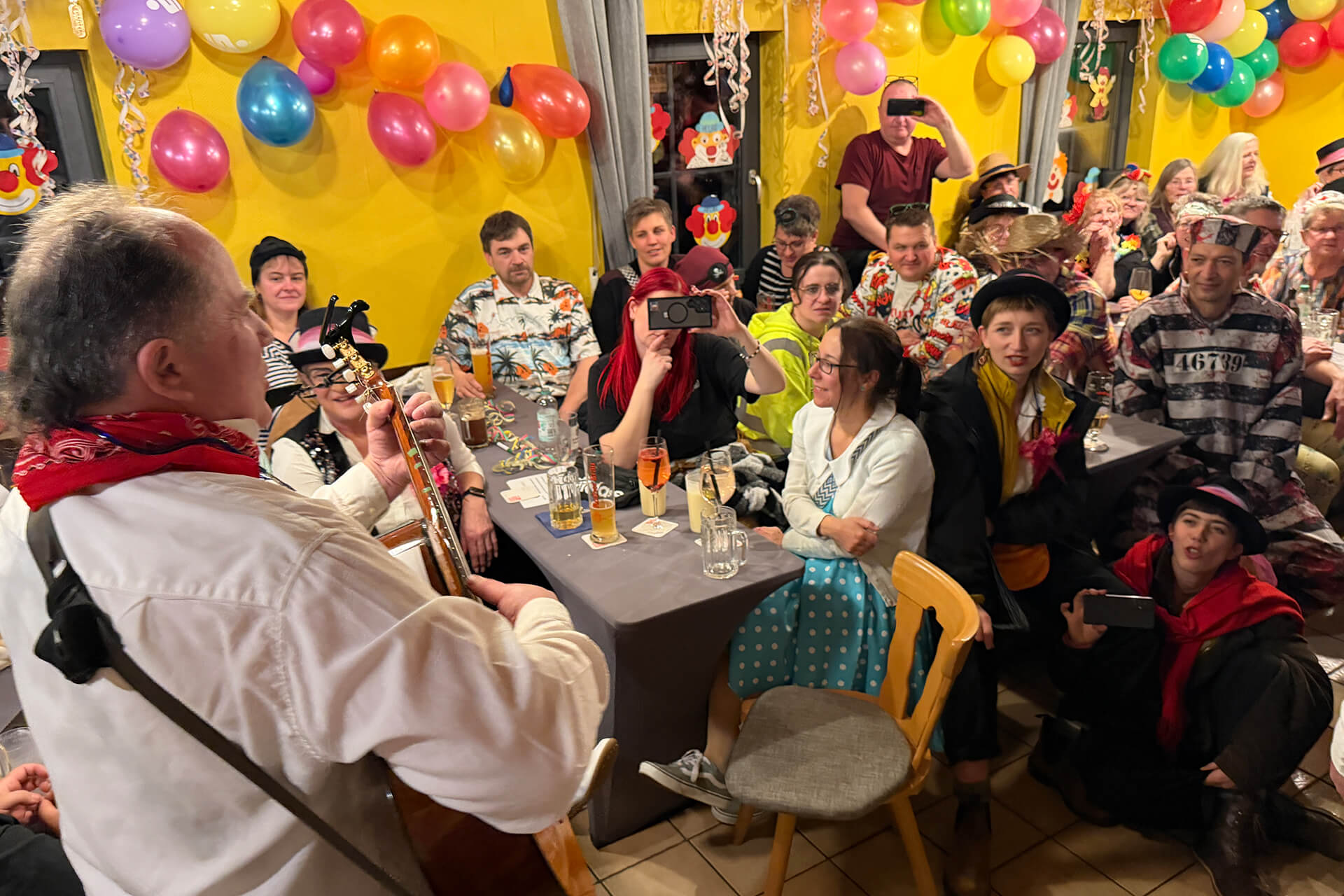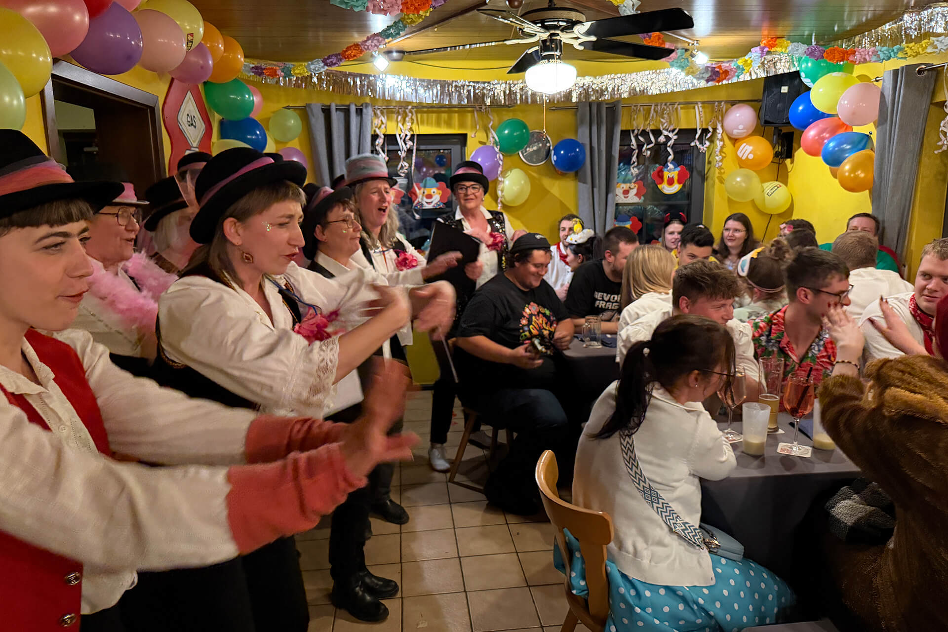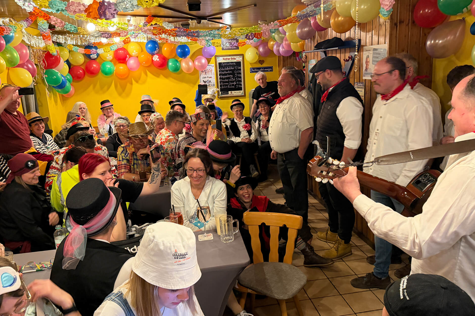 Und im Charlys Dorfstüble ging’s weiter: Mit dabei war wieder die Kulttruppe Tücktelück, jene Männer, die den Wargolshäuser Dialekt feiern wie kein anderer. Ihr Gesang – veredelt durch die flotten Reime von Manfred Hartinger – brachte den ganzen Laden zum Beben.